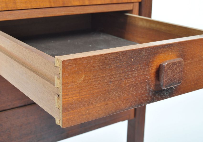 Ib Kofod-Larsen - Faarup Møbelfabrik (manner of) - A mid century teak wood Danish office desk. Raised on squared legs with a pair of suspended pedestals each having 3 drawers with square pull handles in relief. Above a plain desk top. Measures approx; 72cm x 134cm x 59cm
