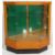 A 1930's Art Deco small proportioned Industrial shop haberdashery corner counter cabinet. The oak body with plinth base having sectional glass panels with glass counter top above. Inset glass shelves with green panel lined interior back.