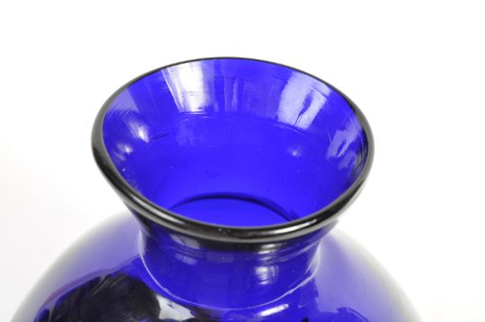 A stunning 19th Century Victorian apothecary medical scientific blue glass advertising point of sale shop display drug bottle in deep cobalt blue glass with gilded lettering reading " Cocaine " Measures: 31cm.