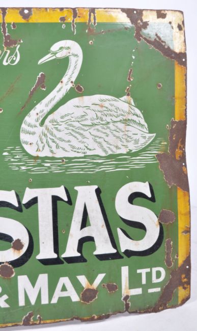 Swan Vestas - Bryant & May - Patent Enamel Birmingham - An early 20th century vintage industrial enamel point of sale enamel faced shop advertising sign. The sign having a green ground with white notation lettering. Measures