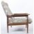 George Fejer and Eric Phamphilon - Guy Rogers - Heals of London - A mid 20th century retro vintage armchair having a tall chintz fabric upholstered and cushioned backrest and seat with a teak wood frame and wide teak show wood elbow rests, all raised on spindle legs with bulbous pad feet. Measures 95cm x 69cm x 80cm.