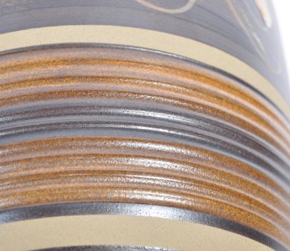 Glyn College for Bourne Denby  -  A mid century studio art pottery vase in the manner of Glyn Colledge. Of baluster form being decorated with stylised crashing waves, banded ribbed centre and upper body,  waisted neck and flared rim. Printed mark and signed to base. Measures 33cm