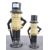 A set of two contemporary 20th century vintage style ' Mr Peanut ' cast iron money boxes each with hand painted finish and notation.. Both differ in size with the tallest measuring 27cm tall and the smallest 19cm tall.