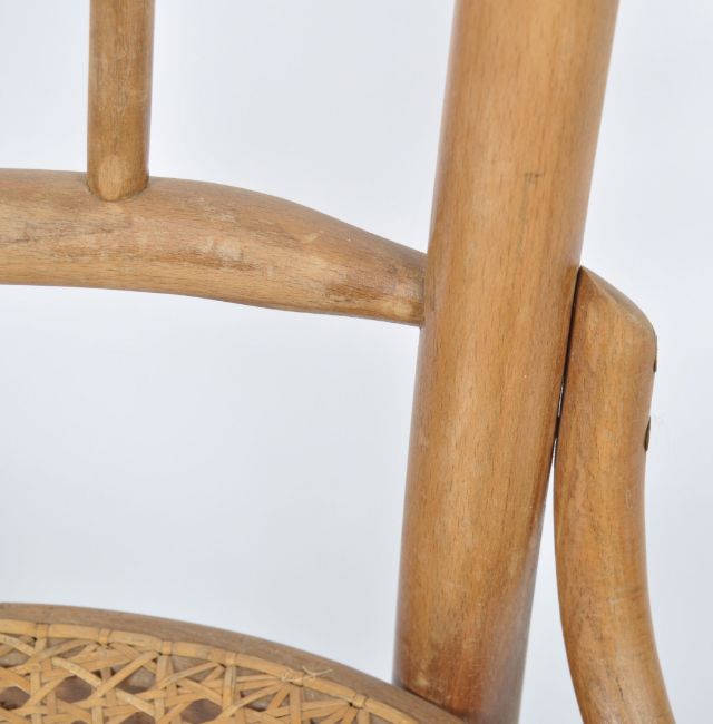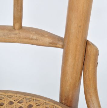 Michael Thonet (manner of) - A set of six vintage 20th century Thonet style bentwood cafe / bistro dining chairs. The chairs with circular cane bergere seat pads raised on turned supports having upper peripheral stretchers with spindle gallery back rests. Measures 90cm x 41cm x 41cm