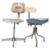 An early 20th century industrial office swivel desk / machinists chair being raised on a 4 point base with panel seat and back rest bearing remains of original paintwork together with another similar. Measures 92cm x 42cm x 40cm