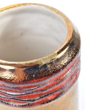 Fat Lava - West German Pottery - An original retro vintage 1970's West German ' Fat Lava ' studio pottery vase. Model No 1019-30. The vase of tapering form with gilded banding and rippled drip glaze decoration to the body. Measures approx 30cm tall.