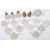 A collection of 20th century retro glass light shades to include a 1930's Art Deco frosted glass globe, 3 Art Nouveau lantern shades with brackets and hooks atop and a set of 8 glass tulip flanged rim frosted glass shades etc.  Various sizes, tallest approx 20cm.