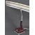 A retro 1970's plastic two tone colourway bankers desk lamp. The lamp in burgundy and white colourway with square base having white push button, chrom anglepoise ' goose neck ' and with white flat light and shade atop in white. Measures 48cm wide