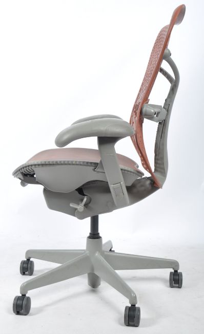 Studio 7.5 - Herman Miller - Mirra 2 - A late 20th century retro swivel desk chair with adjustable positioning for posture. The chair raised on a five point star base and castors. Mould marks for Herman Miller to the back. Measures; 102cm x 73cm.