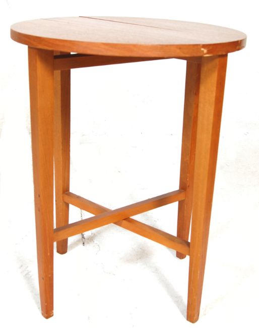 A retro vintage mid 20th century teak nest of tables in the style of Carlo Jensen. The nest comprising of one larger drop leaf table together with 4 smaller collapsible tables that slide underneath raised on 4 tapering legs set on castors. Measures 56 cm high x 62 cm wide x 42 cm deep.
