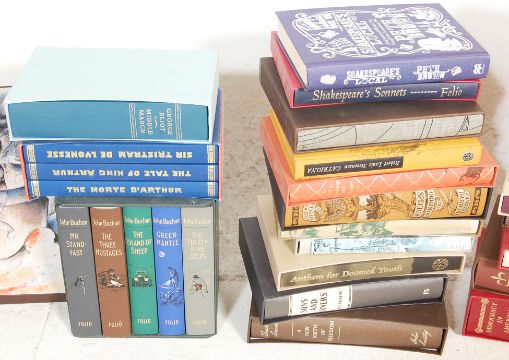 A collection of 30+ Folio society hard cover books to include A Farewell to Arms by Ernest Hemingway, Shakespeares Life and World, The Life of Samuel Johnson by James Boswell, To Kill A Mocking Bird by Harper Lee, The Great Gatsby by F Scott Fitzgerald, Reflections on the Revolution in France by Edmund Burke, Short Stories by Maupasssant and more.