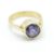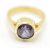 A hallmarked 18ct gold ring bezel set with a round cut purple stone. Stone measures approx 8mm diameter. Hallmarked Birmingham 1998. Weight 7.2g. Size N.