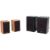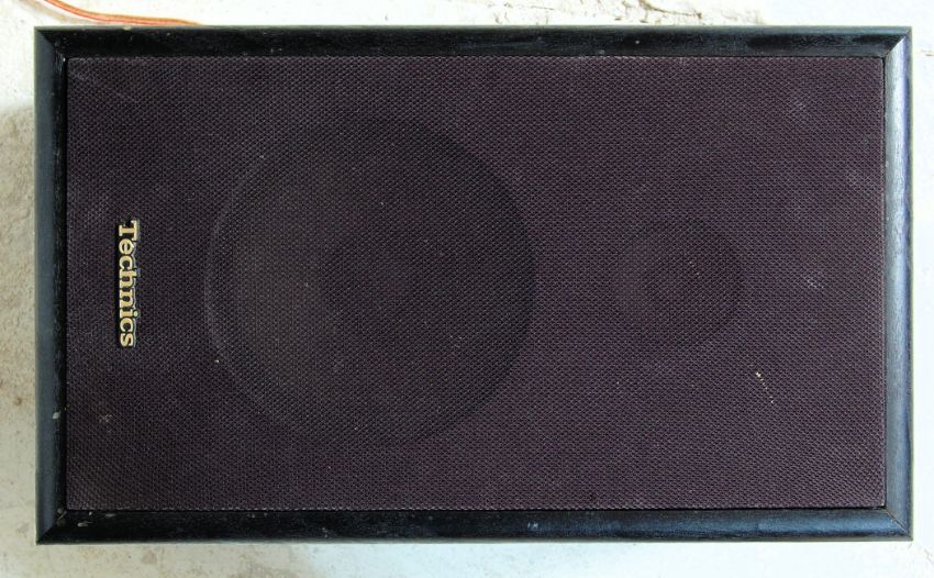 A pair of vintage Kef wood effect bookshelf Cresta speakers together with a pair of Technics Model SB-F911 black bookshelf audio speakers / monitors.