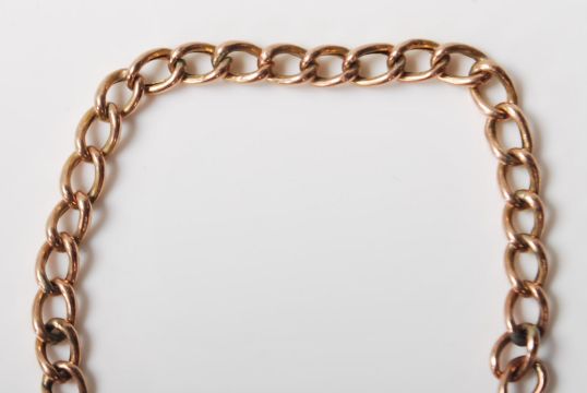 A stamped 9ct gold antique early 20th Century childs curb link bracelet having a heart padlock and safety chain. Weight 2.6g. Marked 9ct to the clasp.