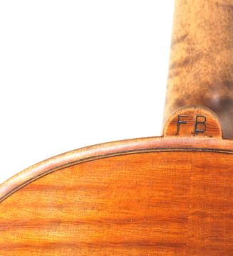 A good 19th century French violin musical instrument labelled Francois Barzoni, Fecit Anno 1897, Manufacture Speciale de la Maison Beare & Fils á Londres, and stamped F B to the neck. The body with twin ' F ' holes, with an ebonised fretboard and tuners. Within its original case, with bow. Measures: 14 1/8", 36cm