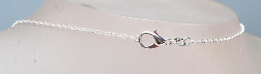 A stamped .925 silver pendant necklace having a silver cable chain with a lobster claw clasp. The pendant has two amethyst style stones set with a .925 silver casing. Chain measures 46cm. Weighs 18g.
