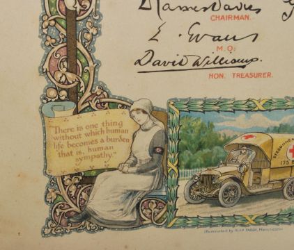 A WWI First World War 1914-1919 St John Auxiliary Hospital recognitions certificate for Private C. Parr. in recognition of valuable services rendered on behalf of the sick and wounded during the Great War. Framed and glazed. Measures 45cm x 35cm.