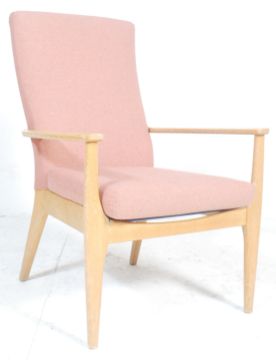 A vintage mid century Parker Knoll  armchair. The chair with square tapering legs and shaped elbow rests having upholstered seat and back rests. Stamped to the base, model PK988-1026 Measures 99 cm high x 65 cm wide x 70 cm deep.