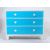 A Victorian 19th century shabby chic two tone coloured painted pine chest of drawers having a white painted body and three blue drawers with round wooden pull handles, all raised on turned feet.