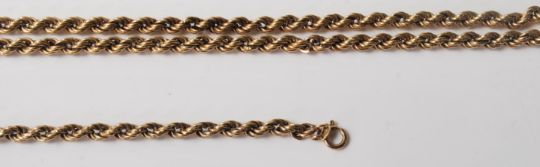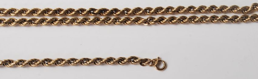 A group of stamped 375 9ct gold rope twist necklace chain pieces for spares, some having sprung ring clasps. Unmarked sections test as gold. Weight 22.0g.