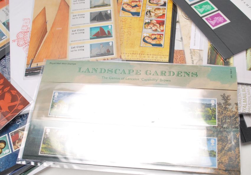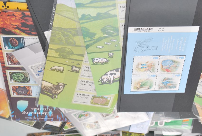 A large collection of 21st century unused decimal Great British postage stamps, mostly in presentation packs, to include 1st and 2nd small and large. Sets to include animals of WWI, the Olympic and Paralympic Games London 2012, Racehorses, Animals etc.