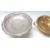 A collection of three tazza dishes, comprising of a tall pewter example with floral decoration to the base and bobbin legs with makers mark to the base by Solkets, another brass example with twin handles and floral decoration to the inside and a whiter metal example having Greek mythology decoration to the inside. Height measures 15cm.