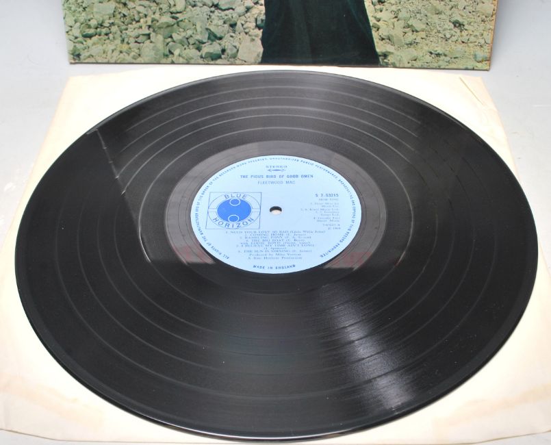 A vinyl long play LP record album by Fleetwood Mac – The Pious Bird Of Good Omen – Original Blue Horizon 1st U.K. Press – 7-63215 Stereo. Vinyl Condition VG. Gatefold sleeve Condition VG.