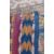 A pair of early 20th Century early south american tribal hand woven carpets / rugs having repeating geometric shapes set within columns having a red background with blue yellow and white motifs.