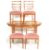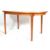 A vintage retro 20th century Danish influenced teak wood extending dining table with four dining chairs. The oval dining table with a  pop up extension being raised on four shaped legs with four ladder back dining chairs with red upholstery. Measures 77 x 152 x 95 cm