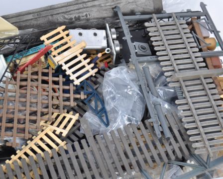 A collection of original G Scale model railway train set trackside accessories to include Bachmann level crossing, quantity of antique lantern lamp posts, fencing and figures. All LGB Lehmann compatible. Good collection.