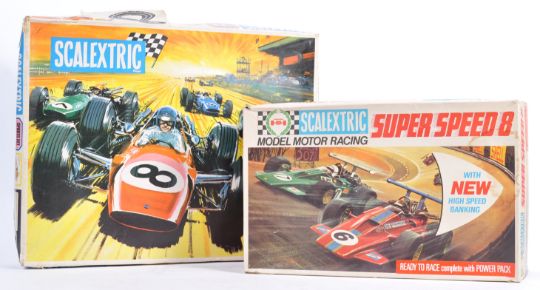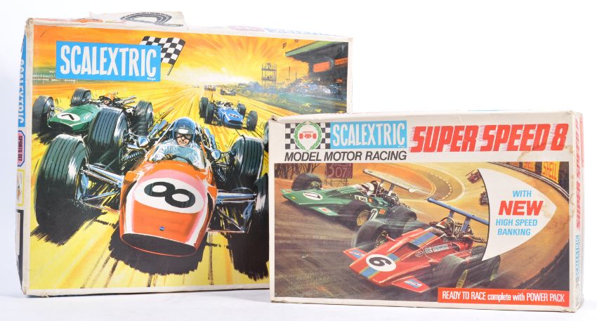 Two original vintage Scalextric 1/32 scale slot car racing sets comprising a Super Speed 8 & Sports Set 31. Both sets in very good condition complete with cars. Great examples.