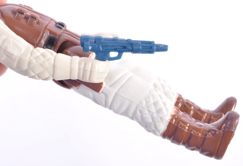 A rare vintage Kenner / Clipper made variation Star Wars action figure ' Rebel Soldier '. Rare dark brown PBP Poch European (Spanish) issue of the figure. Dark brown jacket and boots. 1980 LFL with scarred COO. Complete with original blaster. Generally excellent condition with only very small areas of paint rub, and tight limbs. A rare variation of this figure.