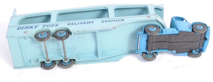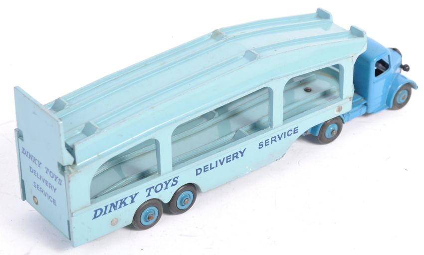 An original vintage Dinky Toys made diecast model toy npo 982 ' Pullmore Car Transporter ' in blue complete with loading ramp. Model in good to good+ condition within very good original box having some minor wear. Lovely example.