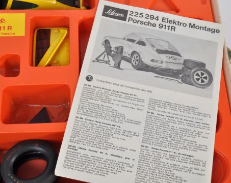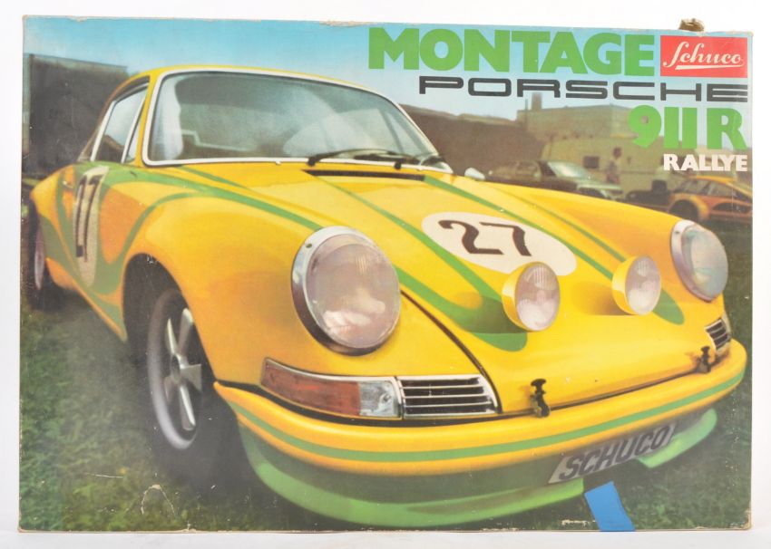 An original vintage Schuco Montage 1/16 precision scale Porsche 911 Rally model car kit. Appears ready assembled and complete but this remains unchecked by us. Extra sets of tires and tool for wheel changing present. A highly detailed racing car with original instruction book included.