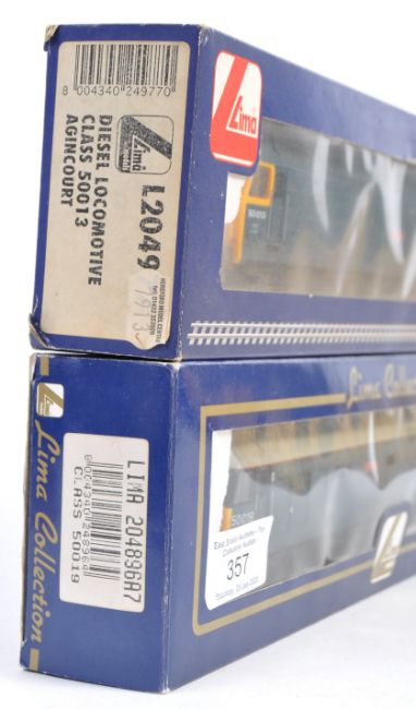 Two original Lima Models 00 gauge model railway trainset locomotives No. 204896A7 - 50019 ' Ramilies ' and L204977 - 50013 ' Agincourt '. Network British Rail loco. Within it original boxes.