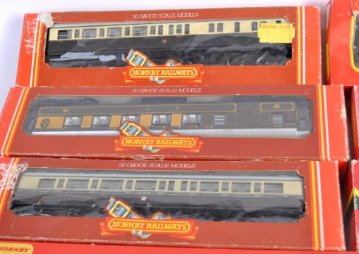 A collection of 16x assorted boxed 00 gauge model railway train set carriages / coaches to include Hornby, Triang-Hornby, Triang and Airfix examples. Comprises carious Pullman, LMS, Orient Express, GWR, Suburban, LNER etc. Great collection.