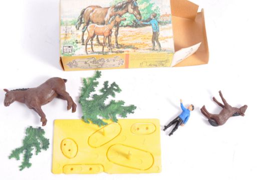 A collection of x4 rare vintage Britains made ' Mini Set Scenic Models ' - 1091 Frogman & Octopus, 1001 Boy & Horses, 1072 US Machine Gun Crew and 1072 US Mortar Team. All generally appear complete and unused (unchecked). All within good original boxes. Great collection.