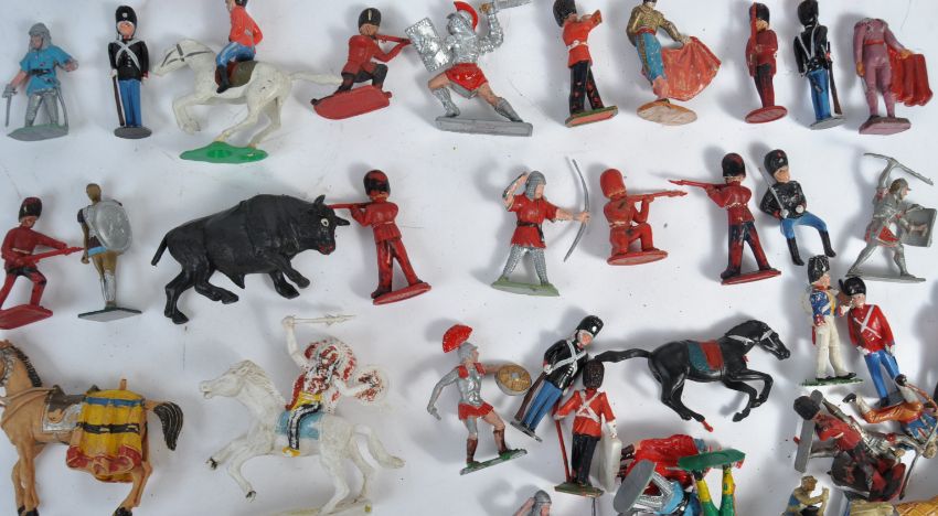 A good assorted collection of vintage plastic soldiers / figures, by various makers to include; Lone Star, Crescent Toys, Britains, and others. Largely Roman Gladiators and Medieval interest, but a rarer Bull Fighting set of figures is also present. Interesting assortment.