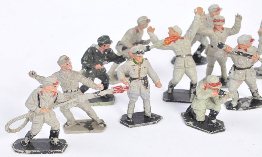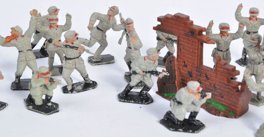 A collection of rare vintage Lone Star made plastic model WWII Second World War German ' Afrikakorps ' figures / soldiers. Various poses, including a section of ruined wall present. All marked ' Lone Star ' to base. Rare.