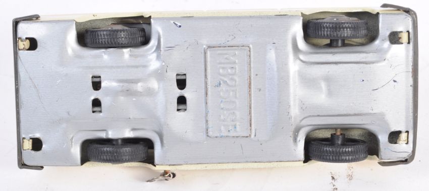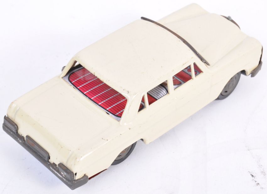 A rare original vintage Ichimura made Japanese clockwork tinplate Mercedes Benz 250SE in white / cream. Complete with winder key. Stamped to base MB250SE. In working condition. Great vintage toy.