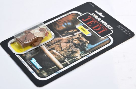 An original vintage 1983 Kenner made Star Wars MOC carded action figure ' Paploo '. Original 77 back Return Of The Jedi card. The bubble fully factory sealed with no splits or dents, the card back flat and generally mint - a tiny pin hole to the rear (see photos). Rare. Supplied with a perspex display case.