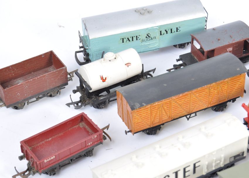 A large collection of 70+ assorted 00 / H0 gauge model railway train set locomotive rolling stock to include Hornby, Triang, Joeuf, Graham Farish and others. Comprises various wagons, tankers, cranes, loaders and many more. Great collection.