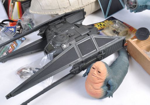 A large collection of assorted Star Wars action figures, playsets, vehicles, accessories and merchandise to include an original Palitoy / Kenner made Rebel Transport, Boxed Micro Machine playset, Hasbro action figures and many many more. Interesting collection.