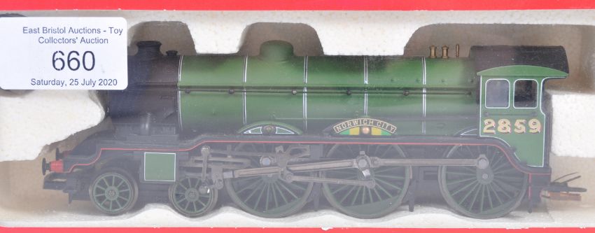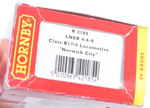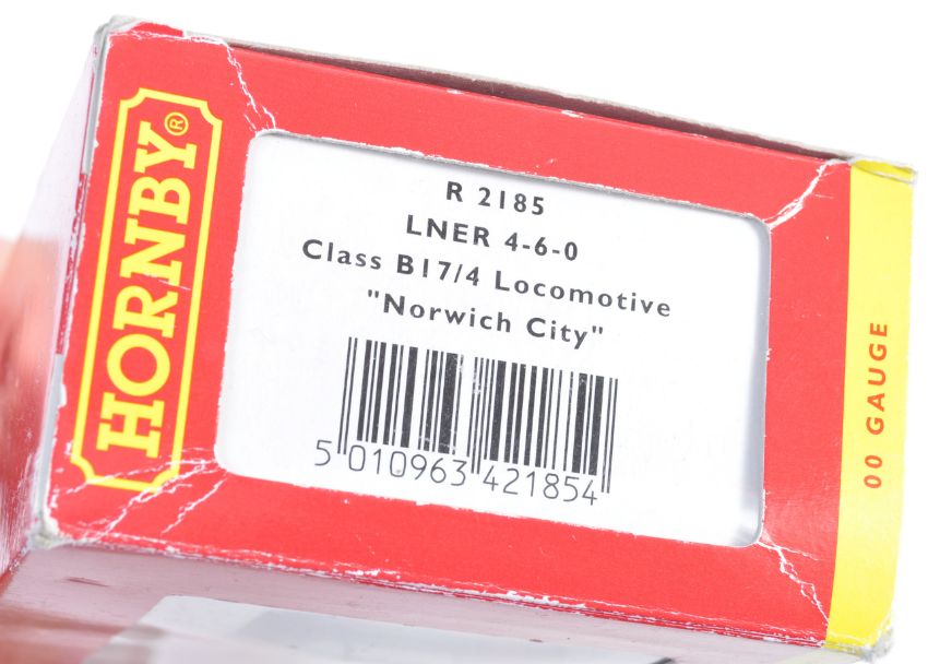 A Hornby 00 gauge model railway trainset locomotive R2185 LNER 4-6-0 ' Norwich City '. Appears mint and likely unused, within its original box. Highly detailed model rail loco and tender.