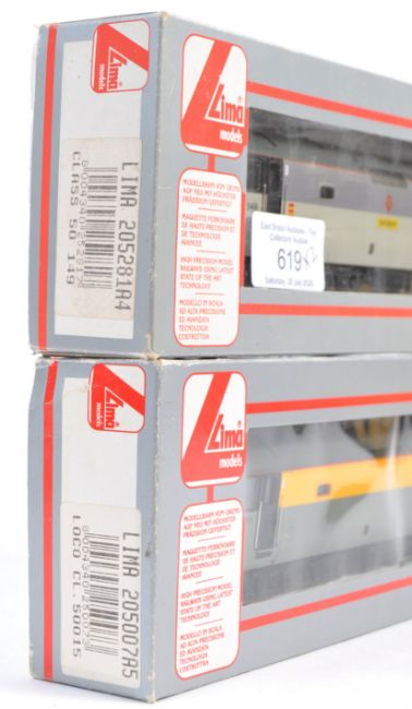 An original Lima Models 00 gauge model railway trainset locomotive No. 205281A4 - 50149 ' Defiance ' and 205007A5 - 50015 ' Valiant '. Within original boxes.