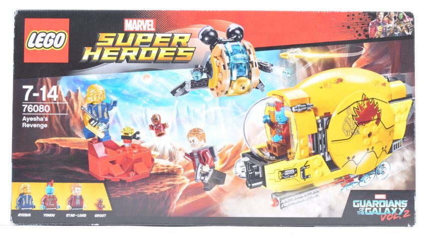 Lego set - Marvel Super Heroes - 76080 - Guardians Of The Galaxy Volume 2 - An original Lego Marvel Super Heroes factory sealed boxed set No 76080 ' Ayesha's Revenge '. Highly detailed set with four minifigures. Great set.