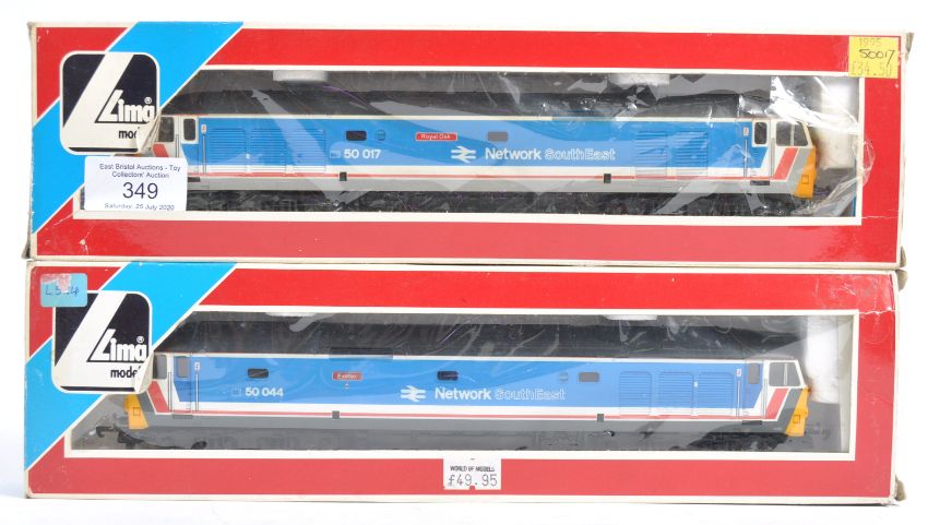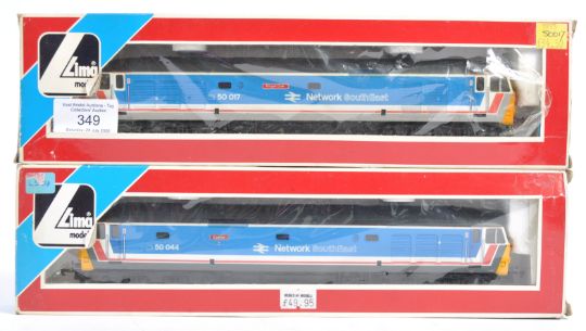 Two original Lima Models 00 gauge model railway trainset locomotives No. 205224 - 50044 ' Exeter ' and 205135 - 50017 ' Royal Oak. Network South East loco. Within original boxes.