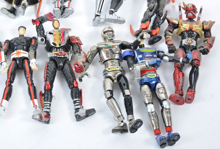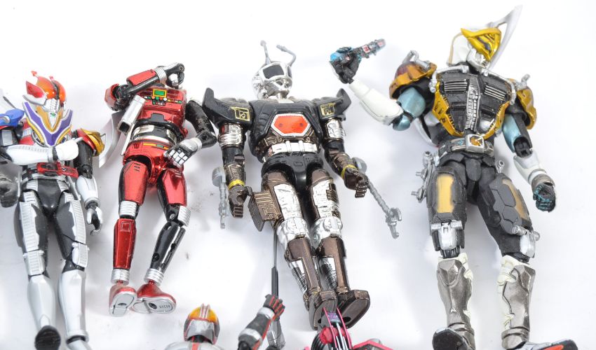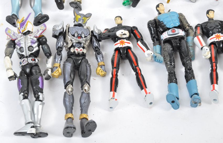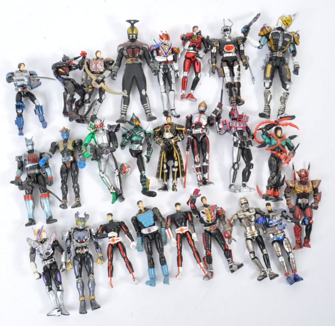 A collection of approx 25x assorted Japanese Anime action figures including Figma, Bandai SH Figuarts and other unknown examples. Comprising of mostly female / girl figures Kamen Rider / Masked Rider examples. Great collection.