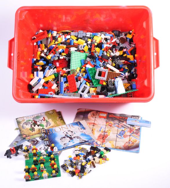A large collection of approx x6kg (including container) of vintage loose Lego. Collection to include Pirates, Town, Star Wars, Bionicle, Ideas. Lots of parts included from basic building blocks to more specialist pieces. Minifigures present (uncounted, but likely some 30+). Great large collection of assorted Lego.