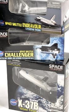 A collection of x4 Dragon Wings made NASA Space Collection diecast model Shuttles, Rocket and Orbital Vehicle of various precision scales. Comprising of Space Shuttle Challenger, Space Shuttle Endeavour, Saturn V Rocket and Boeing X-37B Orbital Test Vehicle. An impressive and highly detailed collection of Nasa Spaceships, boxed complete with display stands and launch pads.